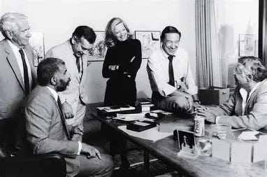 I could claim it was a test of close readership of my pieces or, as been asserted in instant commentary, an example of misogyny. But having found a great picture of the group with the esteemed African-American Ed Bradley, and the talented beyond imagining Diane Sawyer, I was too busy patting my self on the back to properly proofread the caption.